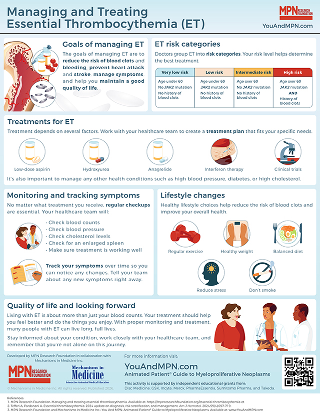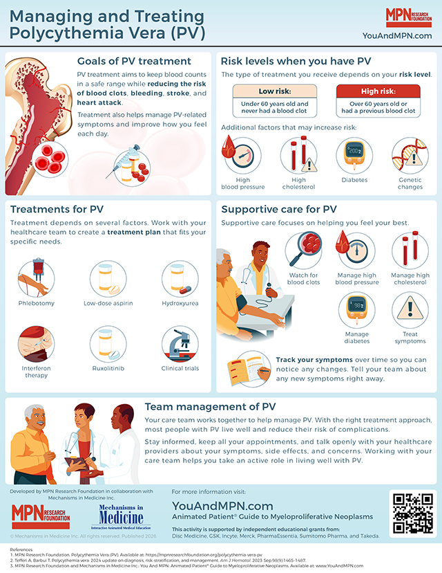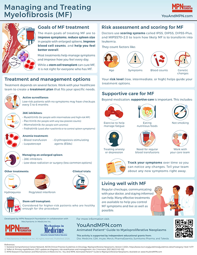 Our myeloproliferative neoplasms educational infographics provide answers to common questions about MPNs to help you start important conversations with your doctor about your cancer care and treatment. Learn the basics about diagnosis, staging, treatment, what to expect from treatment, and more: